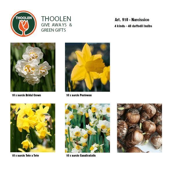 Gängiges Paket mit kräftigen Narzissen. Jedem Paket können wir eine Karte von Ihnen beifügen. Inklusive Pflanzanleitung in verschiedenen Sprachen. Jede Sorte hat ihr eigenes Stecketikett für den Garten.