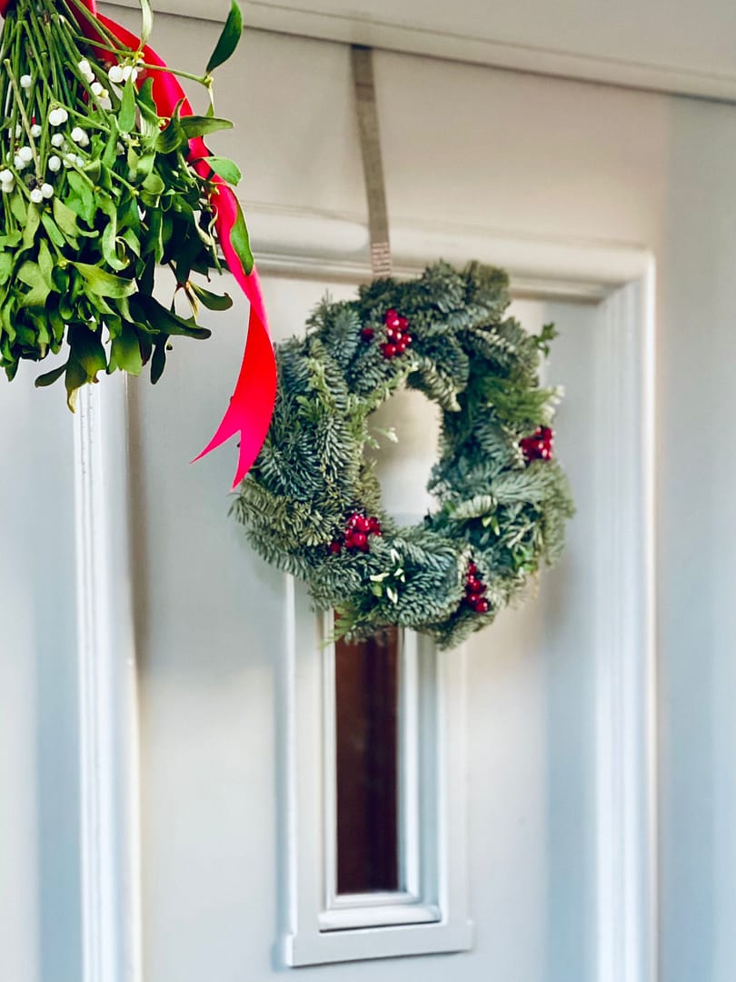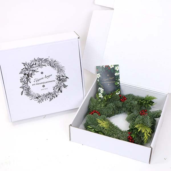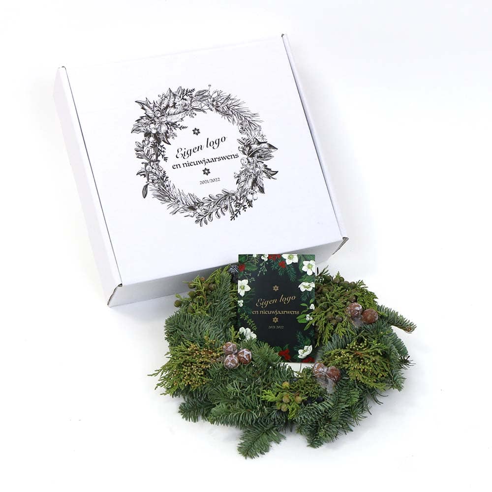 Echte Weihnachtskränze, frisch gebunden, inklusive Vollfarbkarte und luxuriöser Umverpackung.