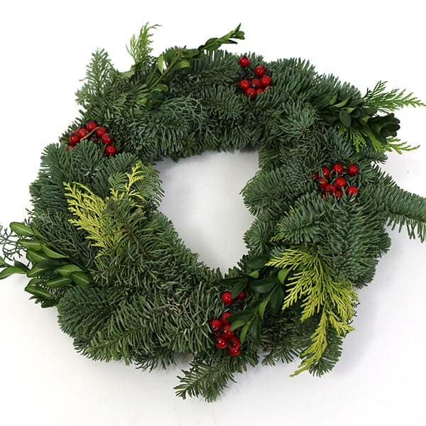 | Wählen Sie die Art des Kranzes | ohne Dekoration, mit roten Beeren, mit natürlicher Dekoration |